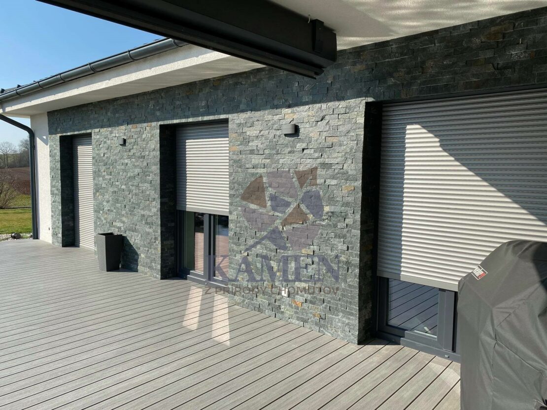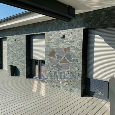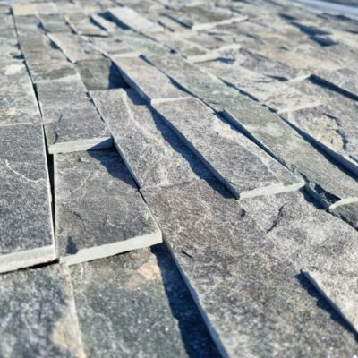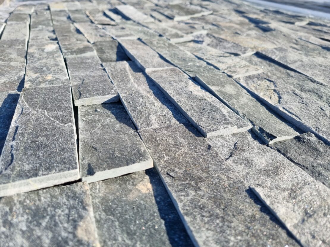 Černozelené kamenné pásky jsou luxusním přírodním produktem vznikajícím z temné, černozelené balkánské ruly. Všechny pásky mají tloušťku materiálu v rozsahu 1-1,5 cm. Výška strany obdélníku je řezaná na 5, 10 nebo 15 cm. Délka strany obdélníku je vždy volná. Tedy v rozmezí cca 5 cm až do 30 cm. Právě díky tomuto vyhotovení vytvářejí krásný, přírodní a reliéfní povrch. V případě přání zákazníka se mohou kombinovat prakticky všechny dostupné výšky materiálu. Tedy 5 cm a 10 cm, 10 cm a 15 cm, popřípadě všechny tři velikosti. Výsledek obkladu je pak ještě tvarově členitější.