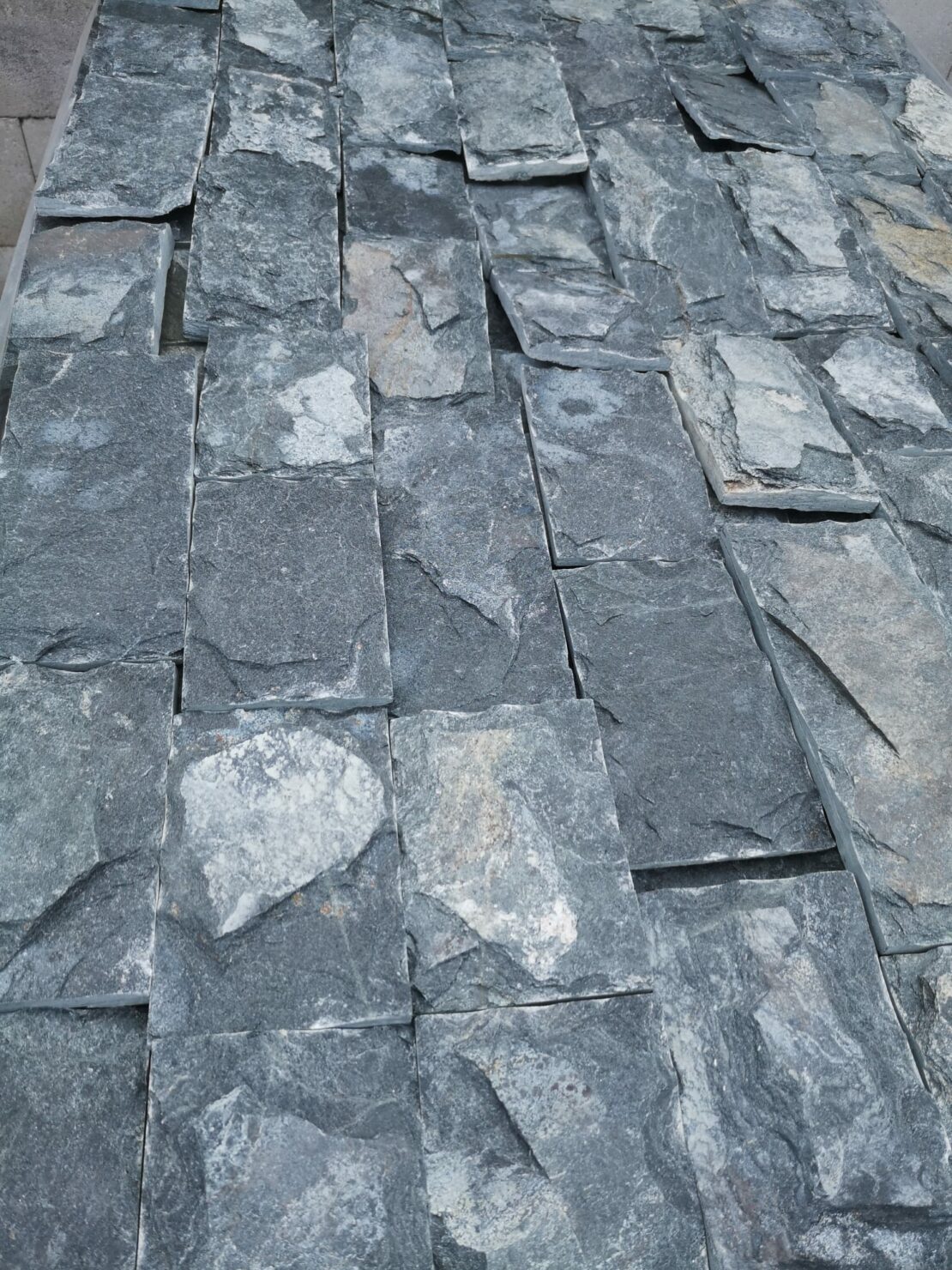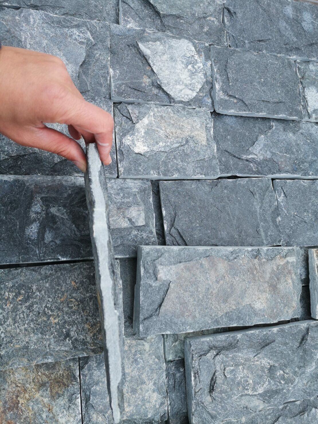 Černozelené kamenné pásky s ručně opracovanými hranami jsou velice honosným a luxusním kamenem. Hodí se jak do městských aglomerací, kde dokáže vytvořit nadčasový naturální dojem, tak i do venkovského stavení, kde naopak stavbě dodá nádech luxusu a civilizace. Vše samozřejmě se zachováním výrazného přírodního pocitu. Všechny pásky mají tloušťku materiálu v rozsahu 1,5-2 cm, výška strany obdélníku je řezaná na 10, 15 nebo 20 cm, délka strany obdélníku je vždy volná, tedy v rozmezí cca 8-25 cm. Právě díky tomuto vyhotovení vytvářejí krásný, přírodní a reliéfní povrch.