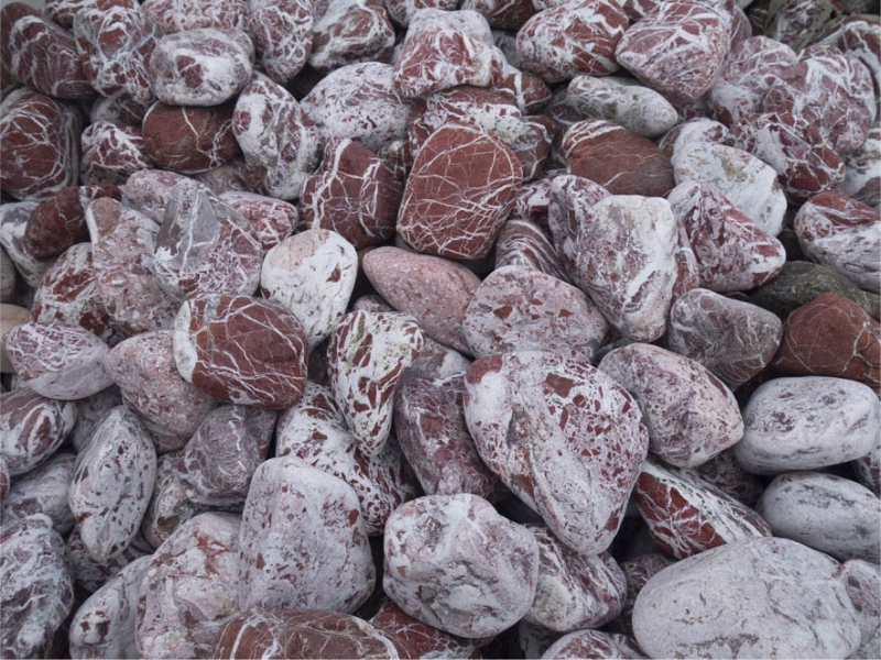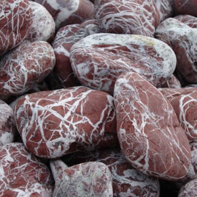 Oblázky v červenobílé barvě u nás můžete zakoupit po 20 kg baleních nebo po ucelených vacích (+- 1 500 kg).