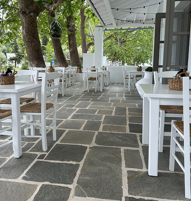 Jedná se o velice tvrdou a pevnou břidlici těženou v horském masivu v okolí řecké Kavaly. Tento přírodní kámen se vyrábí nařezáním a posléze ručním „ostařením“ každého dílce. Jednotlivé dílce mají náhodnou velikost. Mírné odchylky rozměrů jsou u tohoto produktu možné, a to právě díky charakteru a speciálnímu způsobu zpracování dílců dlažby.
