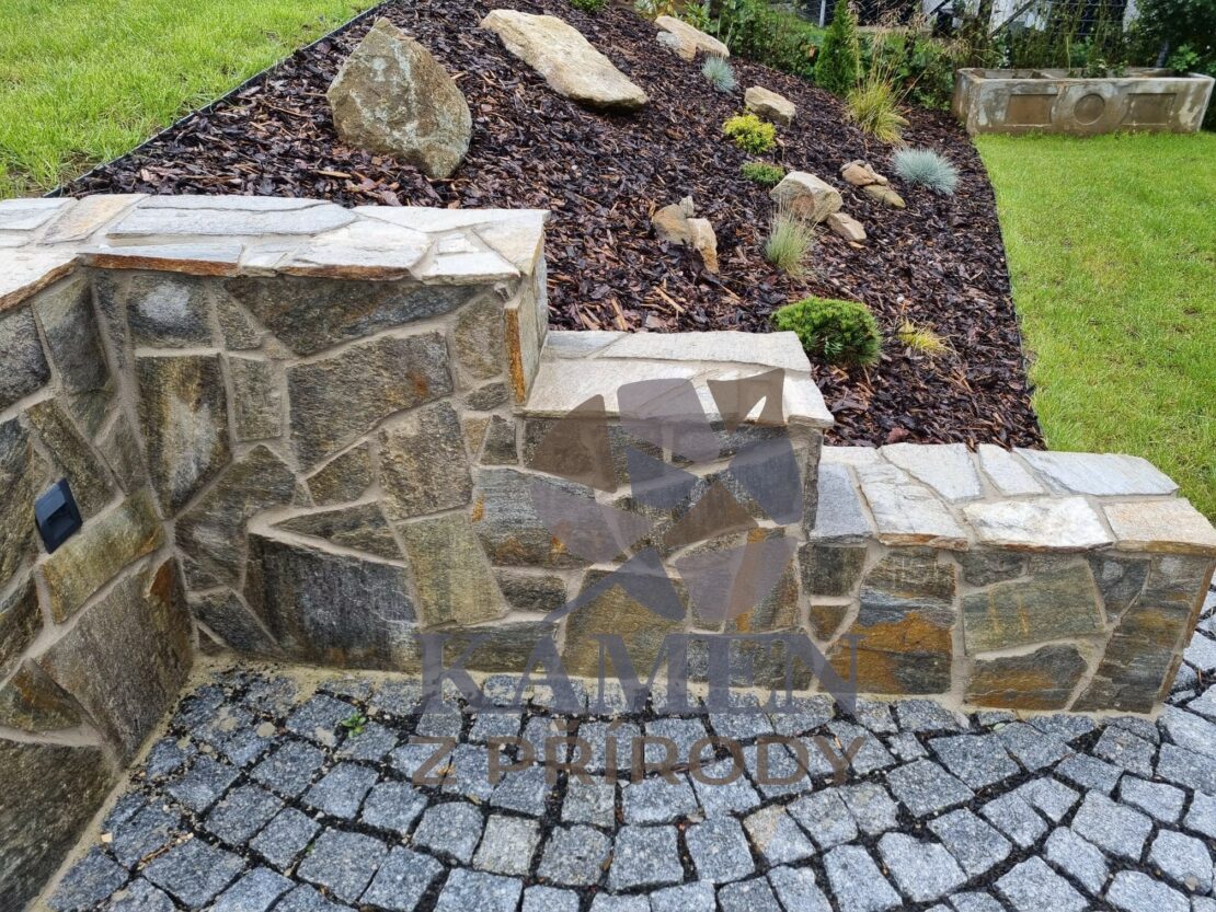 Barevnost – tato kamenná dlažba má v sobě spousty zemitých odstínů s nádherným probarvením zlatavých, resp. železitých hornin.