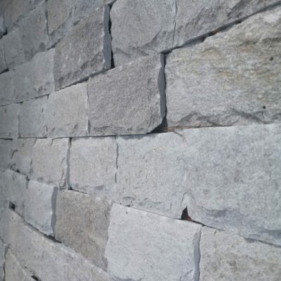 Stříbrnošedé kamenné pásky s ručně opracovanými hranami jsou velice jemným přírodním produktem, který v sobě míchá tmavší a světlé odstíny šedé s krásným stříbrným odleskem. Hodí se jak ke dřevostavbě, tak k moderní městské architektuře. Všechny pásky mají tloušťku materiálu v rozsahu 1,5-2 cm, výška strany obdélníku je řezaná na 10, 15 nebo 20 cm, délka strany obdélníku je vždy volná, tedy v rozmezí cca 8-25 cm. Právě díky tomuto vyhotovení vytvářejí krásný, přírodní a reliéfní povrch.