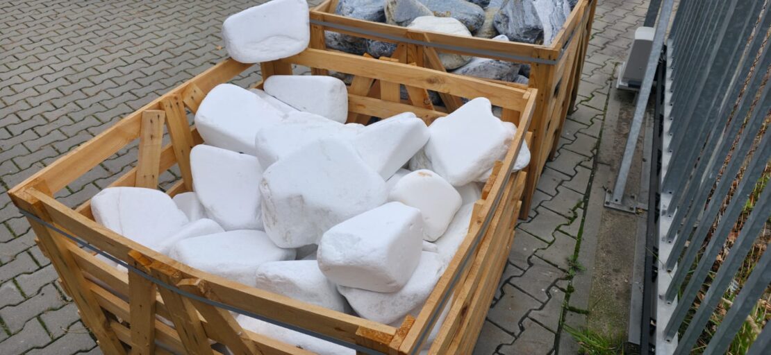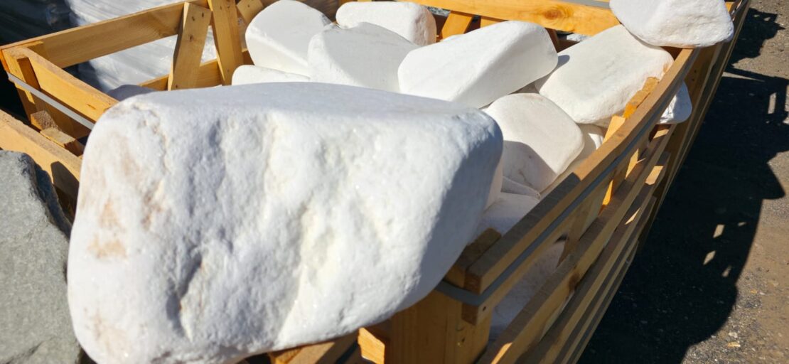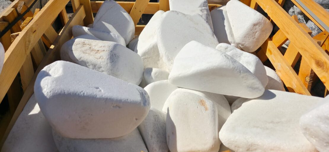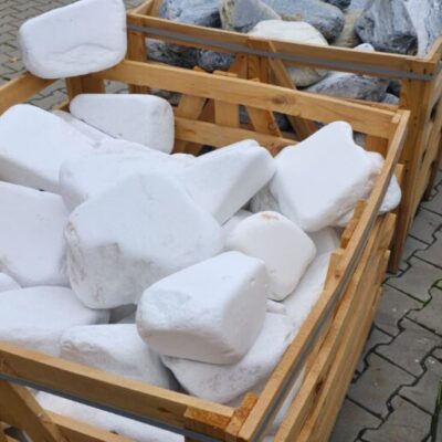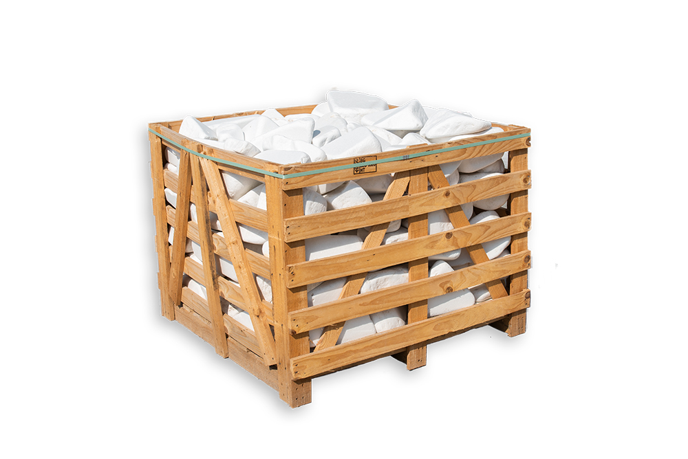 Hmotnost jednotlivých valounů je cca 8 až 30 kg, velikost od 15×30 cm po 20×40 cm. Valouny jsou dováženy v dřevěných boxech, váha celého boxu se pohybuje kolem 1,2 až 1,3 t.