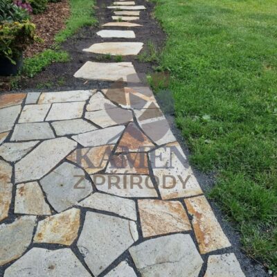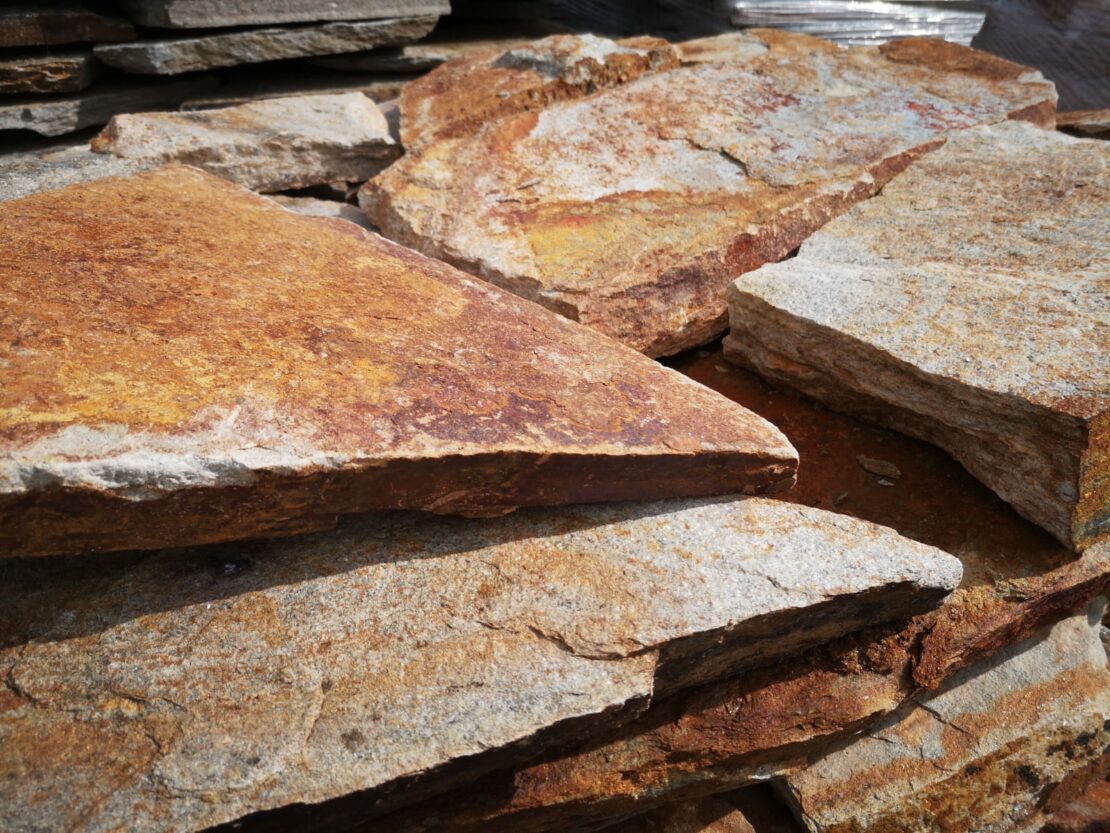 Nejvýraznější a jeden z nejoblíbenějších odstínů balkánské ruly. Výhodou tohoto materiálu je možnost kombinace s téměř všemi horninami vyskytujícími se u nás, proto je zlatohnědá rula pro nás nenahraditelná. Jemné tóny zlaté a šedé barvy jsou doplněny výrazným železitým odstínem, který kameni dodává jedinečnost a nezaměnitelnost s jakýmkoliv jiným druhem kamene. Nášlapy, šlapáky neboli velkoformátová dlažba jsou kameny vhodné k vytvoření chodníčků, pojezdových ploch, parkovacích stání apod. Lze z nich vytvořit celistvou plochu nebo jen samostatné nášlapy v zahradě. Díky jejich pevnosti a síle lze kameny klást jen do zeminy, štěrkového či pískového lože.
