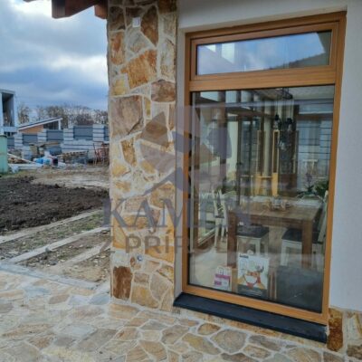 Velice univerzální štípaný kámen, který je hojně využíván v prostředí úzce propojeném s přírodou. Díky své barevné rozmanitosti se hodí téměř ke všem barvám dřeva a lze ho kombinovat s různými stavebními materiály. Zejména v kombinaci se dřevem však vynikne jeho jemnost a ryzost. Při spárování světlou spárovací maltou tento kámen krásně zjemní a nechá vyniknout zlaté odstíny, zatímco šedá spára jej přiblíží více přírodě.