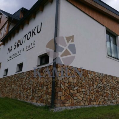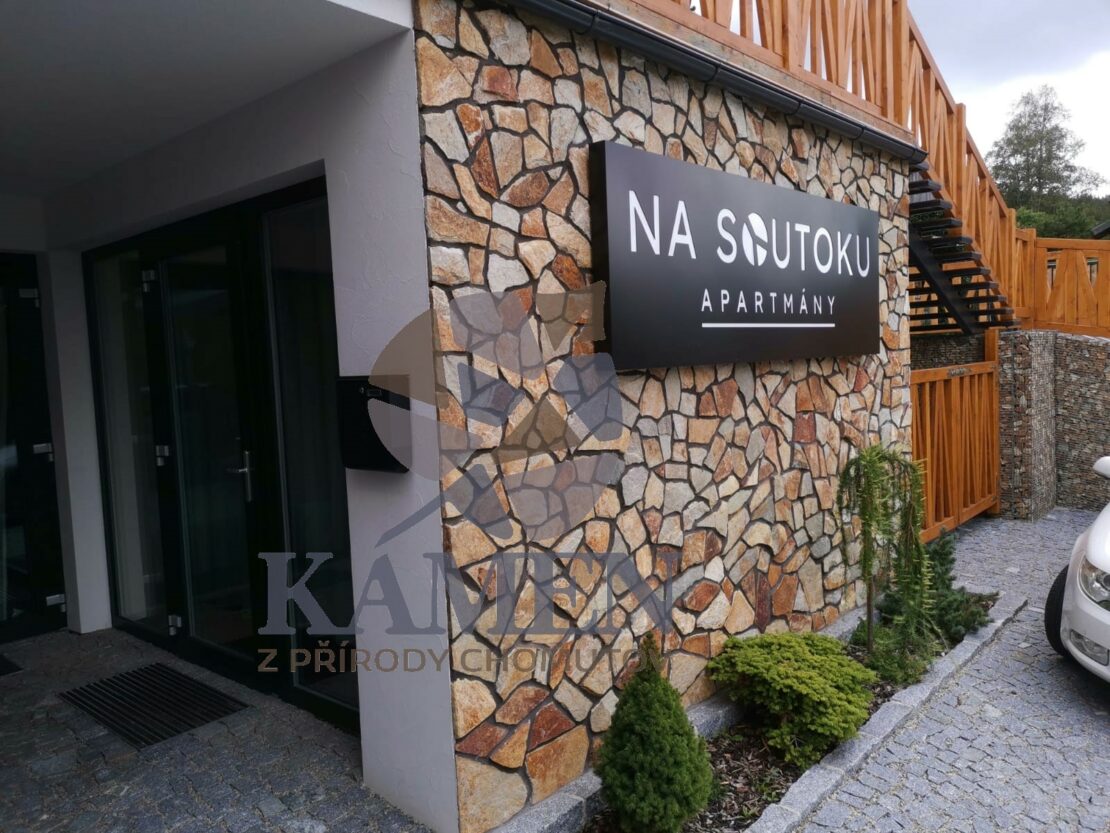 Velice univerzální štípaný kámen, který je hojně využíván v prostředí úzce propojeném s přírodou. Díky své barevné rozmanitosti se hodí téměř ke všem barvám dřeva a lze ho kombinovat s různými stavebními materiály. Zejména v kombinaci se dřevem však vynikne jeho jemnost a ryzost. Při spárování světlou spárovací maltou tento kámen krásně zjemní a nechá vyniknout zlaté odstíny, zatímco šedá spára jej přiblíží více přírodě.